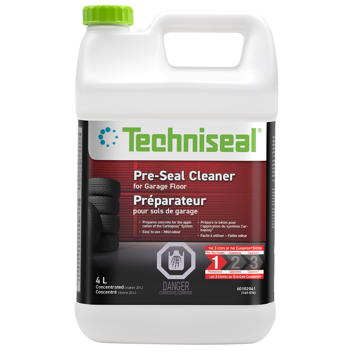 Le Préparateur pour sol de garage Techniseal® est la première étape du système Carbopoxy®. Ce puissant nettoyant rend la surface poreuse et déloge la saleté incrustée, ce qui améliore la pénétration et l’adhérence de l’apprêt Carboprime. Le Préparateur dégage un minimum d’odeur, ce qui le rend plus agréable à utiliser. Peut changer la couleur et la texture des surfaces nettoyées.