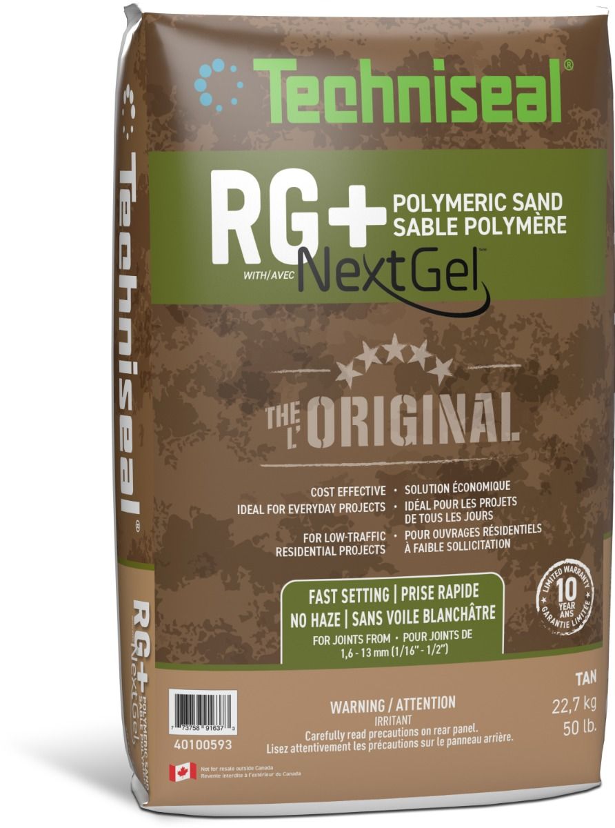 Le Sable Polymère RG+ de Techniseal® est un mélange de sable calibré et de liant qui s’applique à sec, se compacte, s’arrose et durcit après séchage. C'est une alternative économique qui assure un jointoiement parfait des pavés pour les installations courantes à faible sollicitation*. Il est idéal pour les projets jardin, les entrées de garage résidentielles, les terrasses, trottoirs et allées piétonnières. Prêt à l’emploi, il peut être utilisé en pose neuve comme en rénovation. Contrairement au sable classique, il reste parfaitement stable et bien en place. Il prévient la pousse des mauvaises herbes et l’invasion des insectes. Il résiste efficacement à l’érosion causée par l’eau, le gel, le vent, le nettoyage, etc.