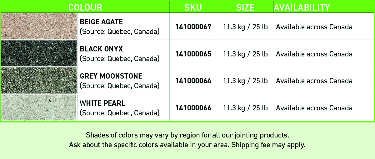 NextGel™ Porcelain Paver Jointing Sand is an innovative alternative to mortar for installing Porcelain Pavers. It is also suitable for granite, marble, travertine and other natural stones. The Ultra-Clean Technology ensures a Haze and Dust-Free environment during installation. NextGel™ Porcelain Paver Jointing Sand is a state-of-the-art mix of graded sand and binder that smoothly flows down joints, allowing for a fast and effective installation of pavers or slabs with false, narrow or wide joints. Its fast-wetting proprietary formula, colour consistency, and efflorescence-free properties make it the best solution for your next porcelain pavers project, available in a convenient 25 lb bag.