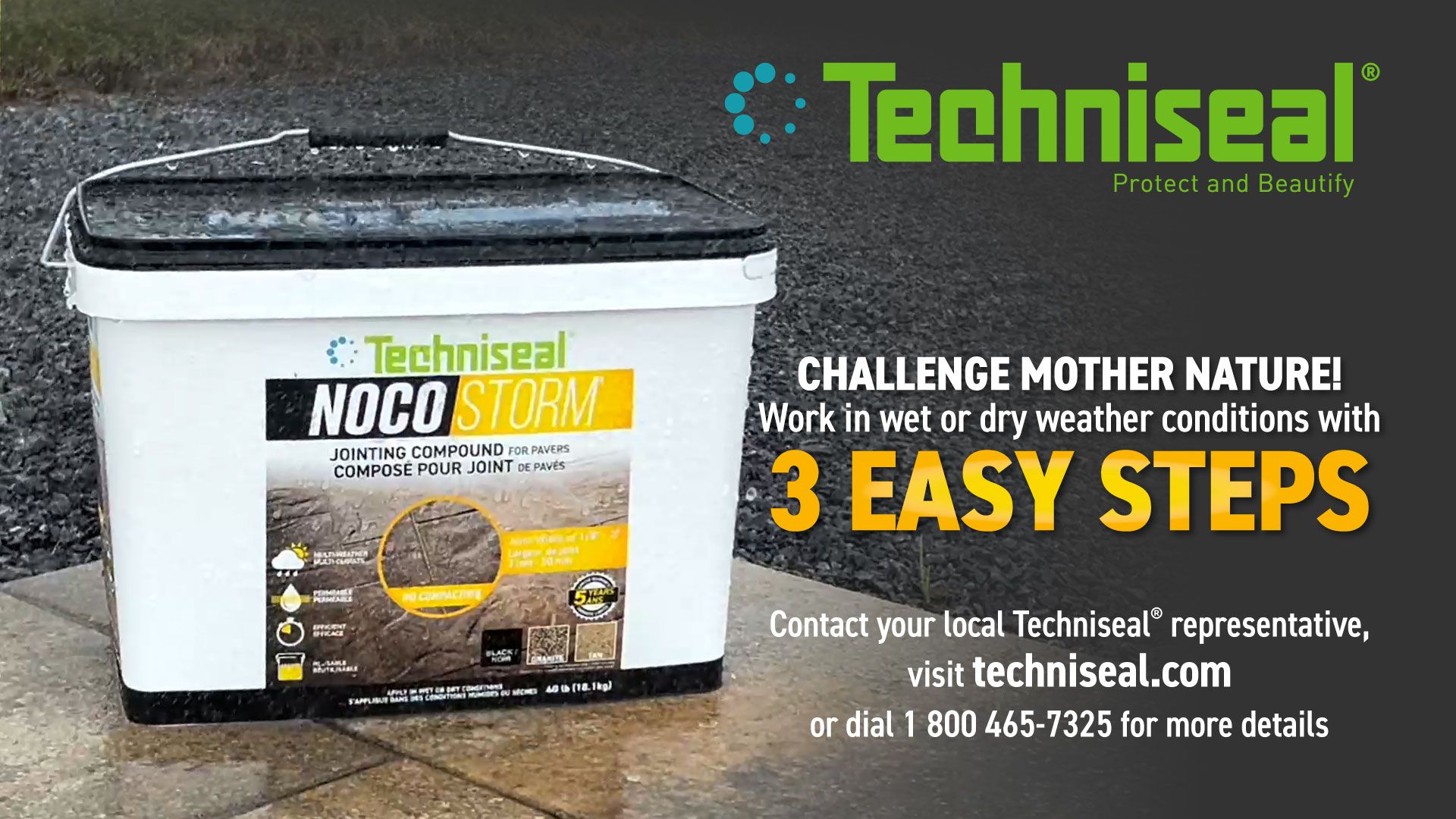 Il n'est plus nécessaire d'attendre que les averses cessent ; le composé de jointoiement STORM™ s'installe sur des pavés mouillés avec une exposition continue à l'eau. Ce produit permet également le jointoiement durable de la pierre naturelle, des pavés en béton ou en argile, des grandes dalles et de la porcelaine extérieure.