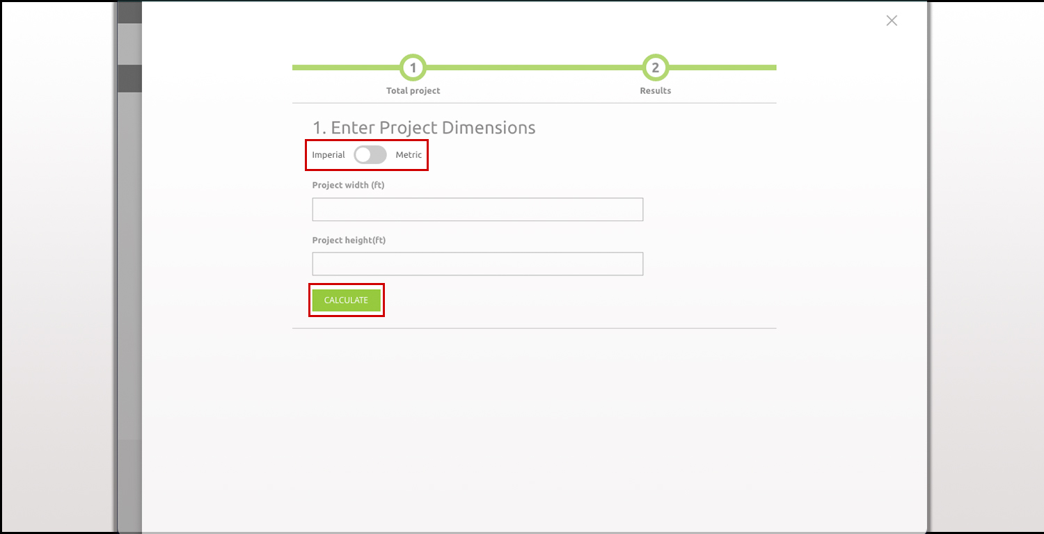 3. Third, once the side panel pops out, you will be prompted to specify the dimensions of your project. Measurements can be entered in either foot (ft) or meter (m); you can select your preferred unit system using the small ticker in the upper part of the panel.