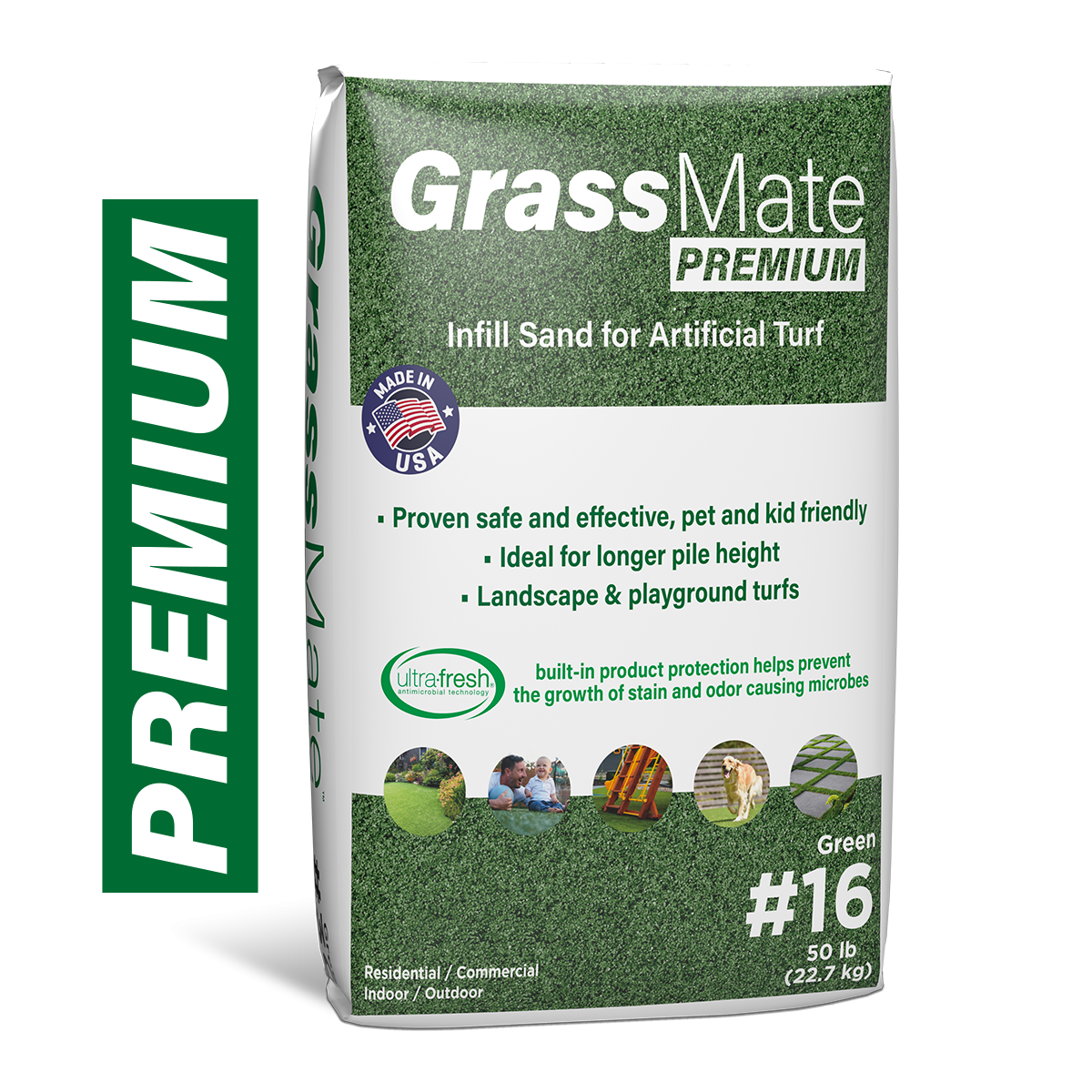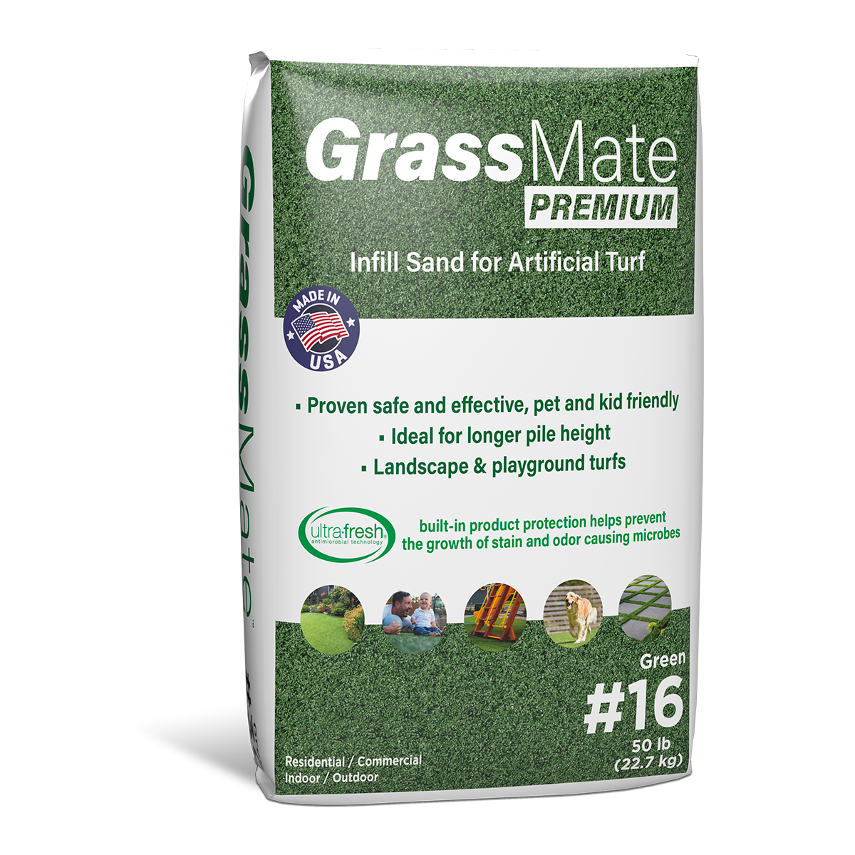 Premium artificial grass infill with Ultra-Fresh® antimicrobial technology ideal for landscape and playground turf. GrassMate is proven safe and effective, pet and kid-friendly.