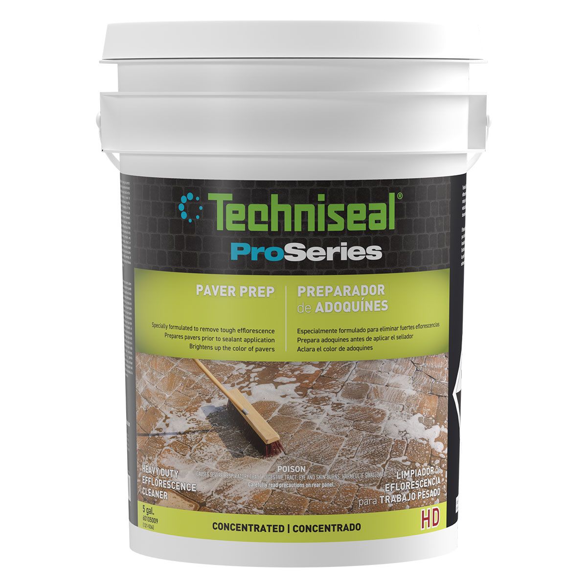 Techniseal® HD Paver Prep is specially formulated to dissolve efflorescence (whitish salt) and remove ground-in dirt (traffic marks, etc.) on pavers, slabs and retaining walls made of concrete. Containing no hydrochloric (muriatic) acid, it works deep without discoloring or damaging the surface. It brightens up colors, cleans evenly and enables sealers to better penetrate the surface of the material. North America compliant except for SCAQMD (LA, Orange, Riverside and San Bernardino Counties, CA).