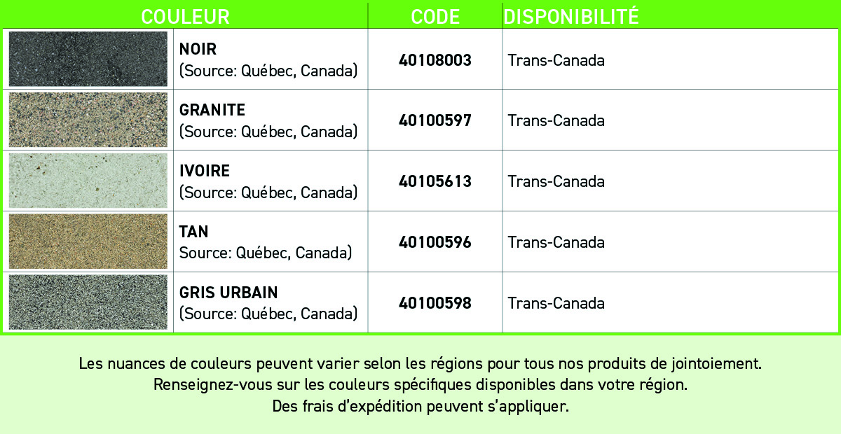 Le pouvoir couvrant varie en fonction du type de pavé et de largeur des joints.