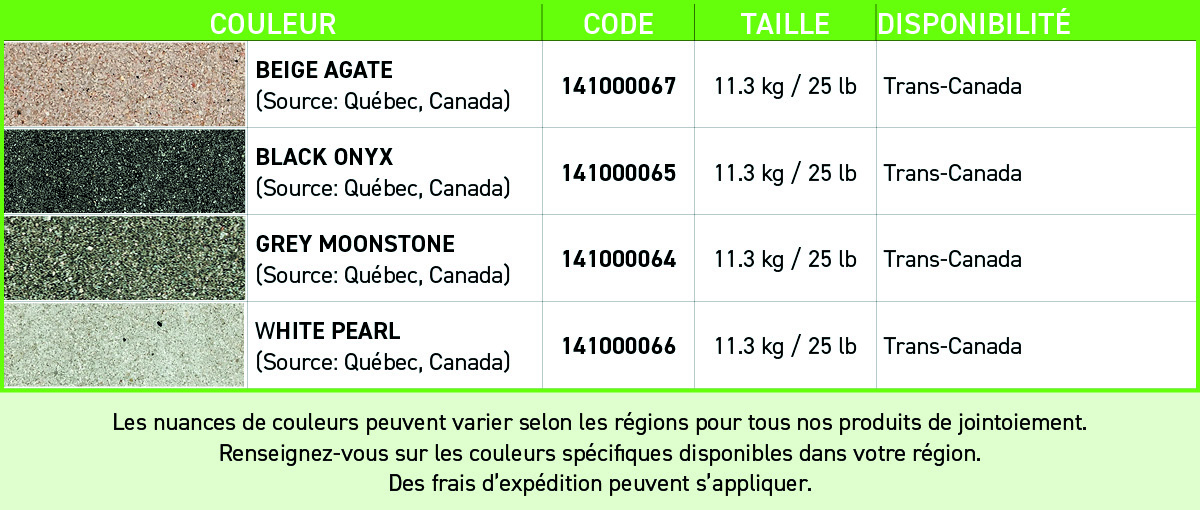 NextGel™ Porcelain Paver Jointing Sand est une alternative innovante au mortier pour la pose de pavés en porcelaine. Il convient également pour le granit, le marbre, le travertin et d'autres pierres naturelles. La technologie Ultra-Clean assure un environnement sans voile et sans poussière pendant l'installation. NextGel™ Porcelain Paver Jointing Sand est un mélange de haute performance fait de sable calibré et de liant qui s'écoule facilement dans les joints, permettant une installation rapide et efficace des pavés ou des dalles avec de faux joints, des joints étroits ou larges. Sa formule unique à mouillage rapide, l'uniformité de sa couleur et son absence d'efflorescence en font la meilleure solution pour votre prochain projet de pavés en porcelaine.