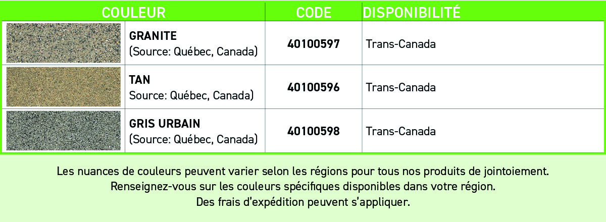Le pouvoir couvrant varie en fonction du type de pavé et de largeur des joints.