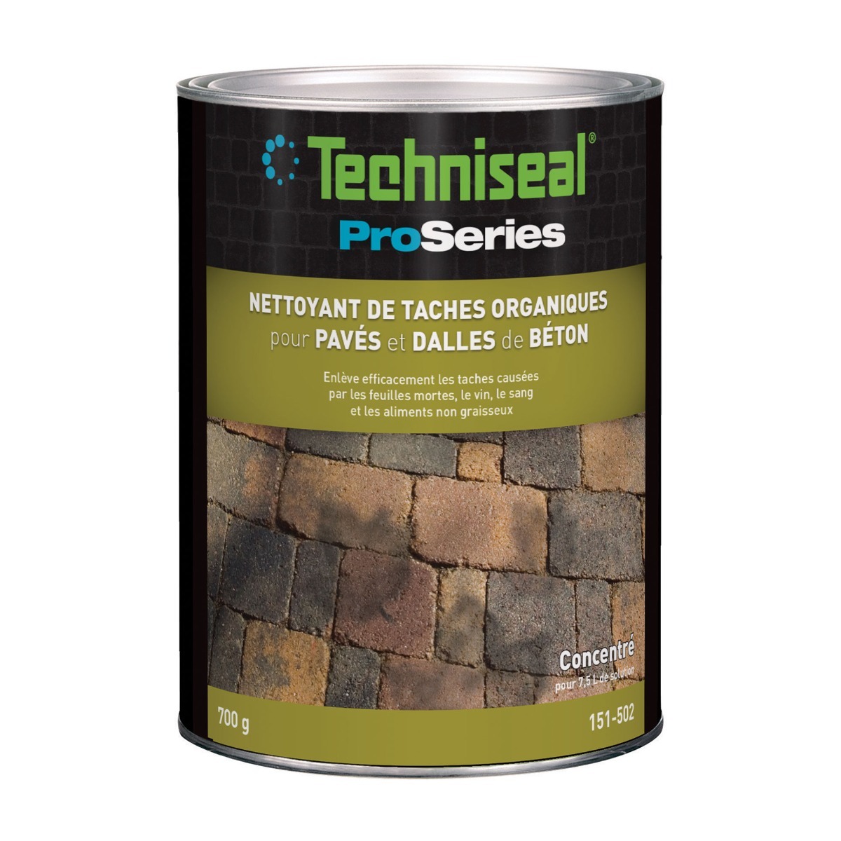 Le Nettoyant de taches organiques Techniseal® enlève la mousse ainsi que les taches organiques comme les feuilles mortes, le sang, le vin et les aliments non graisseux sur les pavés, dalles et les murets de béton.