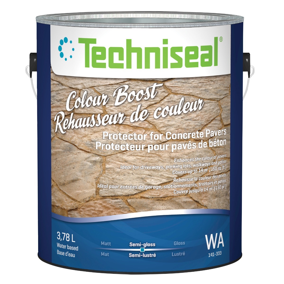 Made of hybrid resins, Colour Boost WA Protector is specially designed to protect concrete pavers. It prevents deterioration due to chemical products such as de-icing salts, while providing resistance to acids and alkalis. Its transparent film stops the penetration of contaminants, facilitating the maintenance of pavers. Water based, WA Protector does not release unpleasant fumes, and it is environmentally friendly.